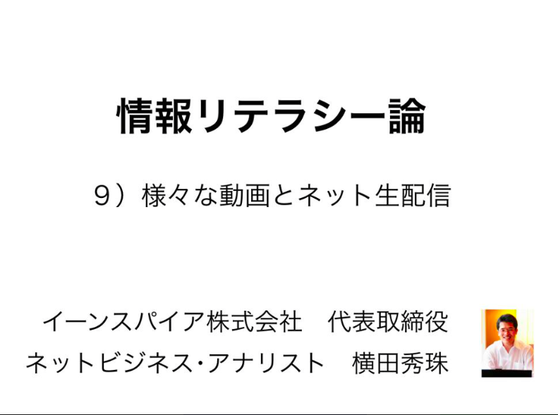 第九回の内容は「様々な動画とネット生配信」についてです。