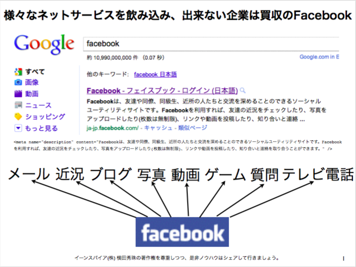 (最近はtwitterの利用者は減少、facebookは機能を拡大、他企業を買収してどんどん大きくなってきています。)