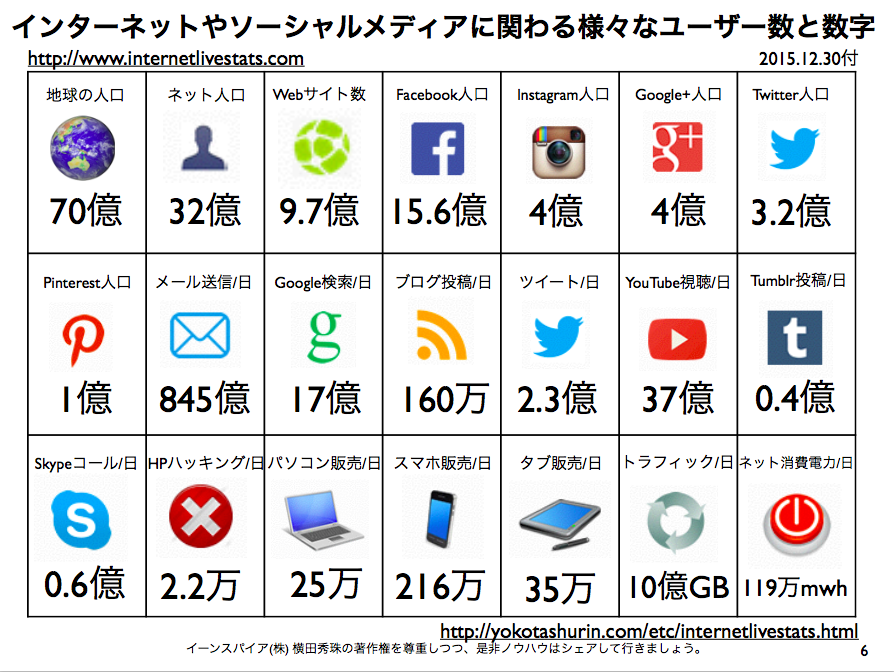 世界の人口からネット人口を差し引いた残りはネット環境がまだ整っていないか、ネットができる年齢でないからとまで言われています。すごいですね。